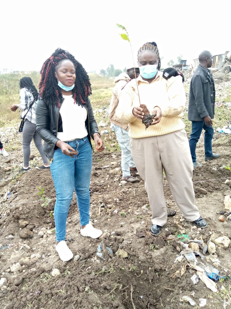 She donated 300 tree seedlings to Dott Rise CBO otherwise known as Gotta City to support thir efforts of rehabilitating the Ngong River banks at Donholm and Embakasi.