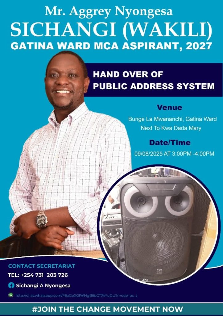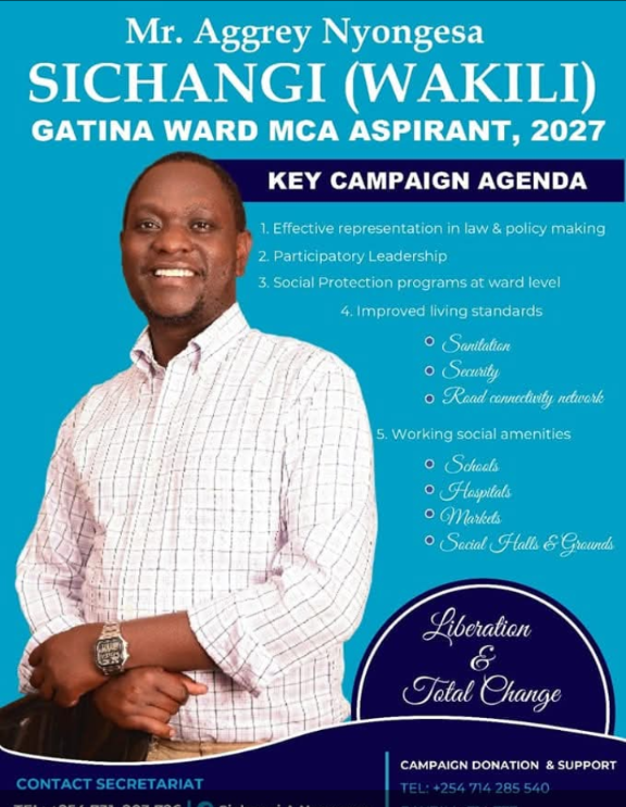 With 2027 elections fast approaching, Wakili Nyongesa Sichangi is proving he’s ready to lead Gatina toward a brighter future. His clear vision, grassroots activism, and unwavering commitment make him the candidate to watch.