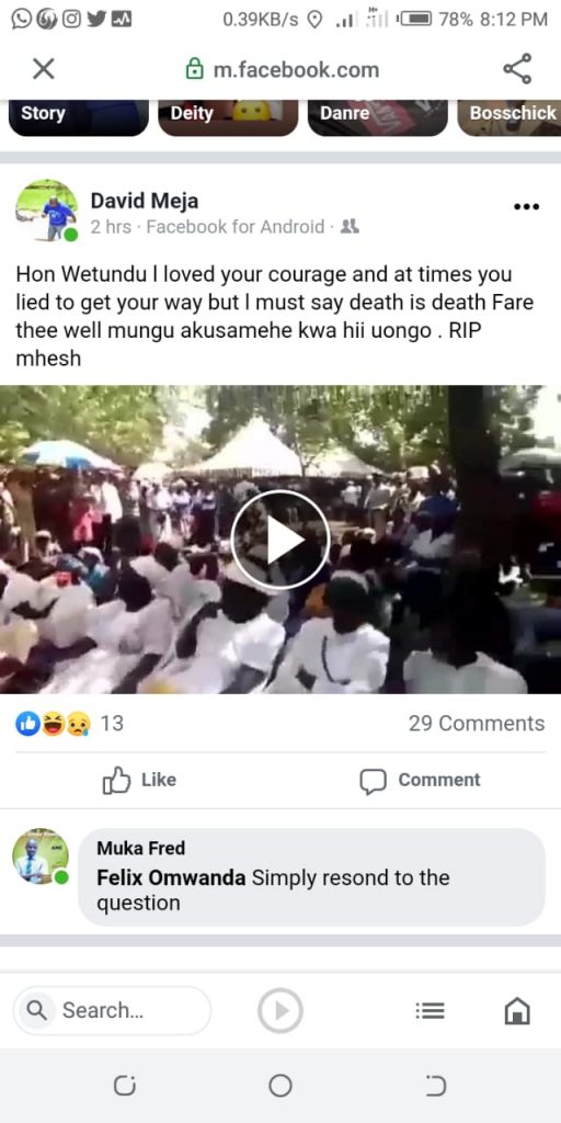 Kakamega senators’ dad Mr David Malala today came under heavy attack from members of Anc party. This was after he made some remarks on the late Hon Albert Wetundu a former Mca who was buried today in Kakamega.