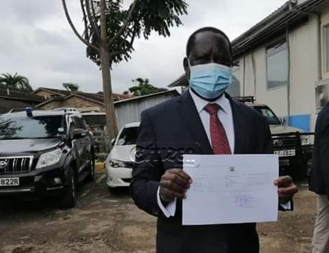 Raila Odinga displays his COVID-19 certificate. He is Corona free. Results undisputed though the certificate is only valid for 14-days.