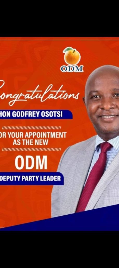 While accepting his new role as deputy party leader, Hon Osotsi has promised to do his utmost best in serving the party, this is something that those who know him believe that he will truly do.