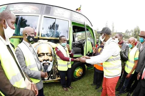 Ngong Bodaboda Sacco save and buy a Matatu for themselves. Deputy President becomes the first conductor.