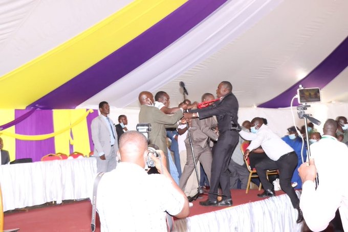It was not easy for Arati to defend himself from a highly charged mp for Mugirango South Silvanus Osoro. The fight was staged during the burial of the father to Deputy Governor Joash Maangi. It was a live on-stage fight. It was Arati who provoked the Deputy President during the burial and Mr. Osoro with hot intestines couldn’t stomach it anymore. Mr. Osoro is a first time Mp representing Mugirango South in Parliament.